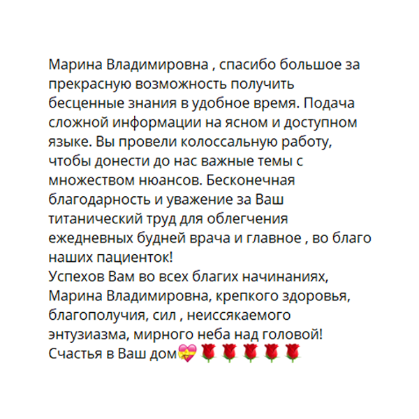 • Обучила более 3200 врачей, многие из которых начали работать с нуля и сейчас успешно практикуют не только в России, но и за рубежом